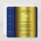 Cette carte étonnante est un beau design bleu et or. Il est recouvert de croix et a un aspect de défilement. La carte va certainement se démarquer et commencer le baptême de votre enfant dans le style.
