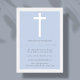 Invitation baptême personnalisable, dans les tons pastel bleu et blanc, avec une croix de feuille personnalisable et une fonction de nom. Choisir à partir d'or, d'or rose ou d'argent.