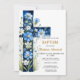 Baptême croisé floral bleu Invitation