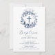 Belles invitations au baptême avec une douce feuille bleue et une croix serrée sur un arrière - plan blanc. Retournez notre invitation pour voir un retour de coordination pour une touche spéciale supplémentaire. Visitez notre boutique pour voir toute notre collection de feuilles.