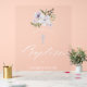 Élégant script violet floral Baptême acrylique signe de bienvenue. Personnalisez ceci avec vos propres détails pour en faire votre propre ! Parfait pour l'entrée de votre fête religieuse de baptême.