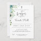 Fleurs et feuilles bleus et verdoyants sur invitation au baptême minimaliste.