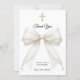 Baptism bow white ivory pearls photo dankeskarte