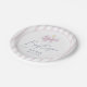 Celebrate your little girl's special day with this modern baby pink bow and stripe paper plate. Perfect for a baptism celebration, this customizable design features soft watercolor details and formal text layout. Personalize with your child’s name and date.