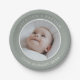 A Baptism design in a modern minimalist style, featuring your own photo on a sage green background.
