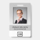 Personalisieren Sie dieses graue Abzeichen eines Mitarbeiters und eines Fotos einfach mit Ihrem Firmenlogo und QR-Code oder Bar-Code. Erhältlich mit verschiedenen Hintergrundfarben und Anbaugeräten. Keine Mindestbestellmenge.