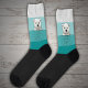 Die weißen und aquamarinen Socken aus der Serie "Bären mit Blick über die Wand". Drei niedliche Bären auf den Socken mit Blick auf eine kleine Mauer. Vier Farben auf dem Kalb und ein Single auf dem Fuß. Niedlich, ungewöhnlich, bunt. Erhältlich in verschiedenen Varianten.