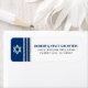 Seien Sie stolz, freuen Sie sich und feiern Sie diesen Meilenstein Ihres Lieblings-Bar Mitzvah, wenn Sie dieses coole, einzigartige, moderne, personalisierte Rücksendelabel verwenden! Fett, marineblau und grau Typografie, ein weißer Stern von David und ein marineblau und silber Glitzer gestreift tallit inspiriert Grafik-Overlay einen einfachen, weißen Hintergrund. Personalisieren Sie den benutzerdefinierten Text mit Ihrem Namen und Ihrer Adresse. Garantiert, um Ihren Korrespondenz stilvollen Spaß zu bieten! Geben Sie einfach Ihren Namen und Ihre Adresse ein, und Sie können dieses benutzerdefinierte Bar Mitzvah Rücksendelabel leicht personalisieren. Bitte schicken Sie mir eine Nachricht mit Fragen oder Wünschen.