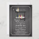 Bar Cart moderne Stock the Bar Couples Shower Invitation avec un char élégant avec des bouteilles de liqueur et de vin et des verres sur un arrière - plan populaire de tableau noir avec une face arrière assortie.