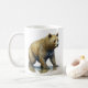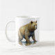 Ohne Kaffee kann ich den Tag ertragen. Niedliche ai-Grafik eines großen braunen Bären und lustiges Kaffeekonzept für einen Kaffeesüchtigen.