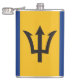 Die gelbe ór goldene und blaue Flagge von Barbados auf einer großen Flasche füllt den gesamten druckbaren Raum hier. Gutes Geschenk für Ihren Lieblings-Bajan. Auch für Reisende Spaß.