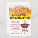 Cette invitation est pour un barbecue d'anniversaire avec un grand feu à flammes massives.