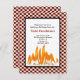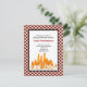 Eine lustige Einladung für jedes barbeque Party. Es verfügt über einen rot-weißen, kontrollierten Rahmen. In der Mitte ist eine Grafik eines Feuers. Erleuchten Sie Ihren Grill nicht, ohne diese Einladung vorher auszusenden!