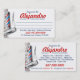 Diese individuell anpassbare Visitenkarte für Friseure und Friseursalons zeigt eine Frischstange, Clippern und Schere/Schere. Kann die Rückseite für Notizen oder als Terminkarte verwenden. Verwendet die traditionellen roten und blauen Farben des Barbiers. Alle von Dale Arthur für Whiz Kreationen erstellten Grafiken.