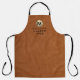 L'tablier professionnel présente un design moderne avec un emblème en monogramme d'or métallique brossé sur arrière - plan en cuir marron sable texturé.