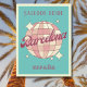 Barcelona Spain Retro Vintage Design avec une boule disco en rose, et des teintes de pêche à l'abricot. Cette belle carte postale est une carte de voeux parfaite pour les résidents de Barcelone, les visiteurs, les touristes ou les fans.