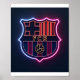 Wall Art & Décor: Eine futuristische Neuerfindung des Wappen von Barcelona, gebadet in Neonfarben und schlichten Linien.