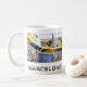 Diese Tasse besticht durch ein farbenfrohes Foto, das in Gaudi's Parc Guell in Barcelona, Spanien, aufgenommen wurde. Es enthält auch eine Farbcollage mit Fotos der Sagrada Familia und anderen spanischen Architekturen.