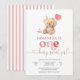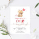 Feiern Sie den besonderen Meilenstein Ihres Kleinen mit dieser reizenden Teddybär-Einladung zum ersten Geburtstag. Mit einem pastellfarbenen Design mit einem süßen Bären, der einen Herzluftballon hält, spielerischen Schriften und charmanten rosa Akzenten setzt diese Karte den perfekten Ton für eine süße und unvergessliche Party. Personalisieren Sie sie mit dem Namen Ihres Kindes, den Party-Details und den RSVP-Informationen, um ein Erinnerungsstück zu schaffen, das Ihre Gäste lieben werden. Ideal für die Geburtstage kleiner Mädchen, verbindet diese Einladung Launenhaftigkeit und Wärme, um Ihre Feier unvergesslich zu machen.
