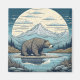 KI-Kunst, die einen braunen Bären an einem See in den Bergen zeigt, mit Vollmond im Hintergrund. Die verwendeten Farben sind braun, blau und braun.