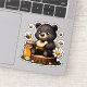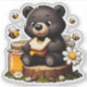 Bären wie Honey, aber Bienen mögen keine Bären. Dieser bezaubernde schwarze Bär sitzt auf einem Stumpf und isst ein Honigsandwich, unbeeindruckt von den wütenden Bienen, die ihn umzaubern, weil er ihren Honig gestohlen hat.