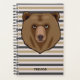 Tierspezialist täglich / monatlich in einem rustikal braunen und khaki gestreiften Muster mit braunem Bärenkopf, auf der Vorderseite. Personalisieren Sie den schwarzen Text, um zu lesen, was Sie gewollt haben. Ideal für Schule, Zuhause oder Büro.