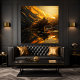 Stellen Sie sich ein faszinierendes Stück zeitgenössischer Kunst vor: ein Bär, der sich anmutig in das ruhige Wasser eingetaucht, unter dem sich seine Reflektion schimmert, das ganze Set vor dem Hintergrund kontrastierender Schwarz- und Goldfarben.