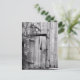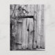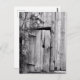 Senden Sie dieses Bild 'Barntür mit Baum', ein rustikales Bild des abgetragenen, verwitterten Holzes einer Gittertüre mit einem Baum, der während des Urlaubs an eine Freundin oder einen geliebten Baum wächst. Fertig in schwarz-weiß.