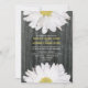 Une faire-part de mariage simple avec des marguerites qui regardent du haut et du bas. L'Arrière - plan est en bois de barnwood. Customisez le texte correspondant au centre avec les détails de votre mariage. Les caractéristiques latérales en face correspondent à l'arrière - plan en bois d'écorce. Personnalisez avec les noms de la mariée et du marié sur le monogramme. Papier recyclé. Le texte est de mariée et mariée avec leurs parents.