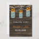 Rustikales Barnwood, dangling Saitenleuchten mit Herbstlauben in einem Maurerkrug Hochzeit Dankeschön Karten Flat. Auch passende Produkte sind erhältlich.