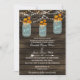 Bois rustique de Barnwood, feux à cordes pendants avec feuilles d'automne dans un pot de mason invite mariage. Produits correspondants également disponibles.