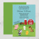 Personalisieren Sie die Baby-Dusche-Party Einladung für landwirtschaftliche Nutztiere. Es verfügt über eine rote Scheune mit Huhn, Schwein, Pferd und einer niedlichen Kuh. Einige Elemente © zenware design @ Mygrafico