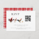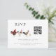 Carte RSVP de mariage rustique et boho avec aquarelle illustrant les poulets. Il y a aussi un code QR.