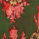 Dies ist ein digital erweiterter Ausdruck, der aus einem Vintagen, ca. 1900 barocken Rokoko-Muster von großformatigen Blättern und floralen Medallionen abgeleitet ist, die mit Blattschwanz und Rose tropfen. Rot, Rot, Rosa und Weiß auf rotem Boden.