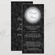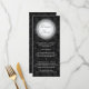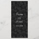 Ein runder Rahmen an einem schwarzen, blumengeschmückten Damast-Muster verleiht dieser Menükarte ein reichhaltiges, opulentes Gefühl. Nutzen Sie es als Menü oder als Druckstück, das Sie für Ihre Hochzeit, Dusche oder Verlobung benötigen. Passen Sie es mit Ihrem eigenen Menü oder anderen Informationen auf der Vorderseite an und fügen Sie Ihren Namen und das Datum des Ereignisses auf der Rückseite gegen das gleiche Damaskus-Muster hinzu. Erhältlich in alternativen Farben mit passenden Produkten. com