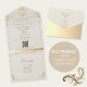 A beautifully crafted, functional, and environmentally conscious all-in-one invitation that pairs baroque elegance with complete wedding-day clarity.