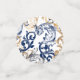 Elegant vintage vector pattern featuring flowing baroque-style floral scrolls in navy blue and gold on a clean white background, creating a classic, luxurious, and timeless ornamental design.
