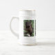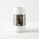 Barred Owl Beer Stein. Eine schöne, erwachsene Eule, die auf einem Baumstamm steht. Foto von Brian Kraus.