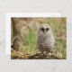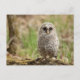 Auf dieser Postkarte befindet sich ein Foto einer niedlichen Eulenwurzel, die vor einem Eulenflieger steht.