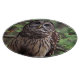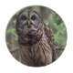 Eine schöne, erwachsene Eule, die auf einem Baumstamm steht. Foto von Brian Kraus.