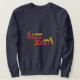 Das Sweatshirt der Fun-Stall-Jagd wird bestickt mit einem Hund, der unter Strohhaufen eine Ratte ausschnüffelt, über die Worte "Barnjagd".