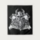 Schwarz-Weiß-Illustration einer bärtigen und heftigen Norse, die einen Krieger mit Äxten besucht, bereit, in den Krieg für Odin zu gehen. Perfektes Geschenk für Menschen, die die alte skandinavische Kultur und nordische Mythologie Liebe.