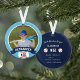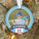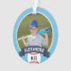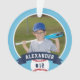 Commémorez une saison fantastique pour votre joueur de baseball préféré avec cet ornement personnalisé cool dans une couleur bleu marine et bleu marine. Personnalisez le devant avec la photo du joueur, son nom et son numéro de maillot, et ajoutez des détails au dos, y compris le nom de l'équipe ou de la ligue, la saison, l'âge, le poste et le nom de l'entraîneur.