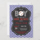 Baseball Baby Dusche Einladung. Das ist ein Junge. Rot und Blau. Chalkboard und Zickzack Hintergrund blau.