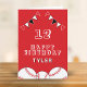 Baseball Ball and Flags Sports Kindergeburtstag Card. Das Design hat Baseballbälle und Geburtstagsparty bunte Flaggen in rot, schwarz und weiß Farben. Fügen Sie Ihren Namen, Ihr Alter und Ihren Text hinzu und erstellen Sie Ihre eigene Geburtstagskarte. Ideal für Jungen und Mädchen, die Baseball Liebe.