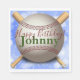 Eine individuelle Papierserviette mit Baseball & einer gekreuzten Fledermaus, mit "Happy Birthday" in einem Maroon-Skript und dem Namen Ihrer Person in einem Grün. Von HAMbyWhiteGlove, passendes Zubehör separat verkauft.
