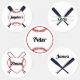 Baseball thematisches Set von Aufklebern. Fünf verschiedene Baseball-Designs. Passen Sie den Namen Ihres Kindes an. Die Etiketten sind wasserdicht und können auf Kleidung, Büchern, Geschirr usw. verwendet werden. Praktischer Weg, um den Besitz Ihres Kindes zu sichern, bleibe mit ihnen.