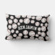 Ein lumbales Kissen des individuellen Namens, das eine oberflächliche kenntnis von Baseball der verschiedenen Größen gegen einen schwarzen Hintergrund kennzeichnet.