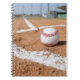 ein Baseballbild und ein Baseballfeld. Kreide-Kontur für die Kreide-Box und Kreide-Kontur, die in Richtung der ersten Base geht.