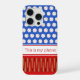 Dieses gemusterte Gehäuse kann auch mit Ihrem Namen oder anderen Texten personalisiert werden. Es gibt ein helles Polka Dotmuster von Baseballs auf blauem Hintergrund und ein koordinierendes Muster von Baseballschlägern auf rotem Hintergrund.